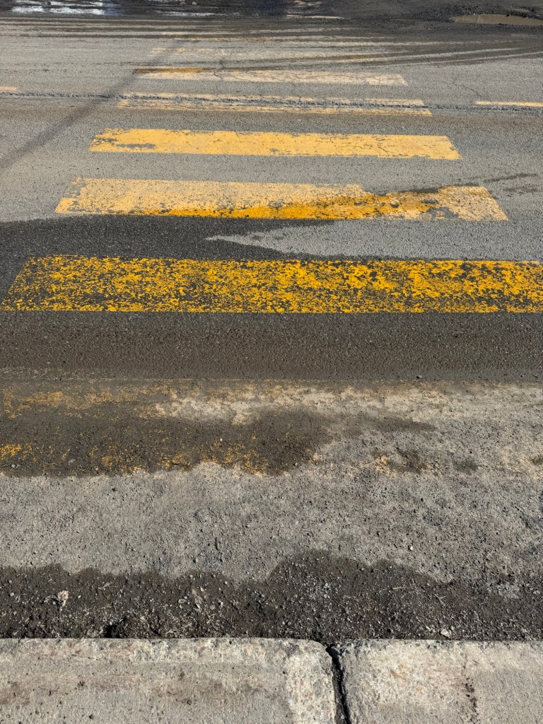 Elles sont là, au sol. Des petites croix peintes. Jaunes, simples. Discrètes.